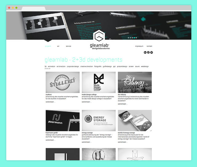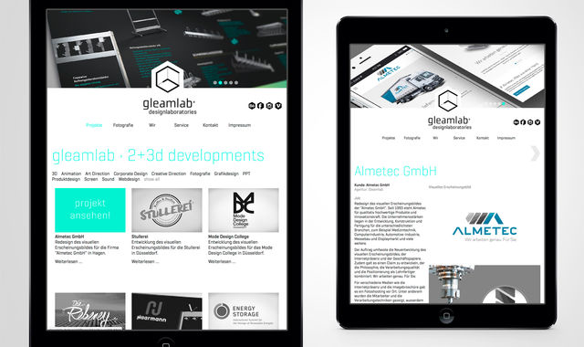 Realisation der responsiven Corporate Webseite von unserem Partner gleamlab designlaboratories mit dem Open Source Content Management System "Contao".